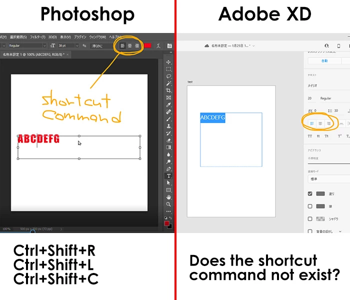 AdobeXDには、テキストを右揃え/左揃え/中央揃えなどに変更する
