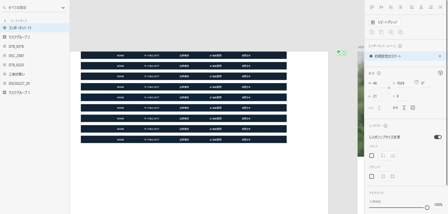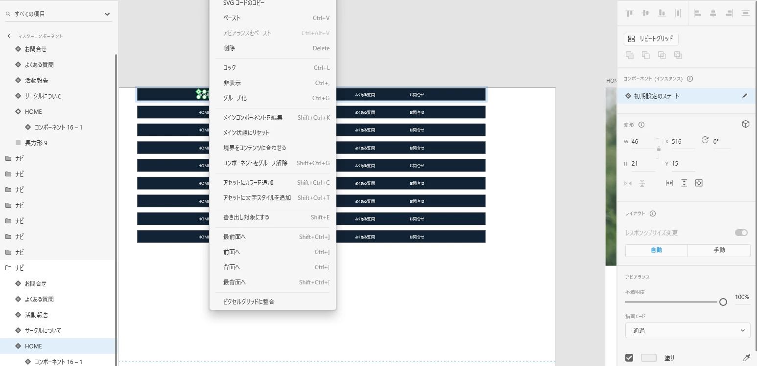 コンポーネント群をリピートグリッドにてコピーした状態で、親である一番上のメインコンポーネントを編集しようとしたところなぜかインスタンスになっており(MainComponent1.png)、その上で「メインコンポーネントを編集」した所、作った覚えのない場所で自動生成されてしまいます。(MainComponent2.png)