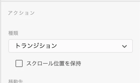 自動アニメーションは、アートボードがスクロール可能な高さ(ビューポートの高さよりアートボードの高さが大きい)である場合スクロール位置を保持して画面遷移する特徴があるので、トランジションで画面遷移するように変更します。