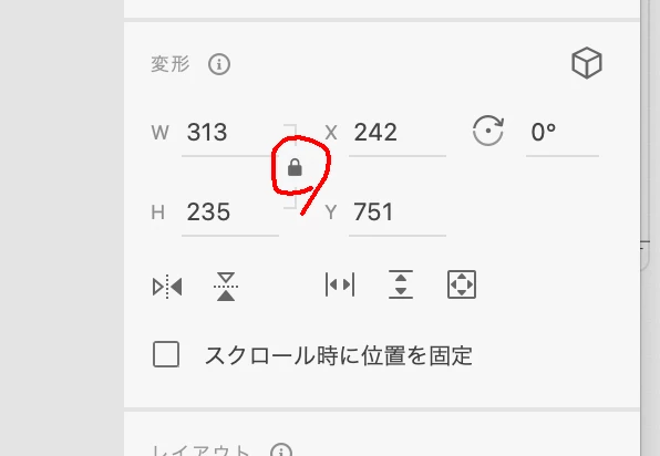 写真のサイズのところの鍵を外してBOXの大きさを変更してしまいました。写真の比率が少し変わってしまったと思い確認したかったのですが他のソフトのように縦横比を%で表示してくれる場所を見つけられませんでした。どこで確認できるでしょうか。