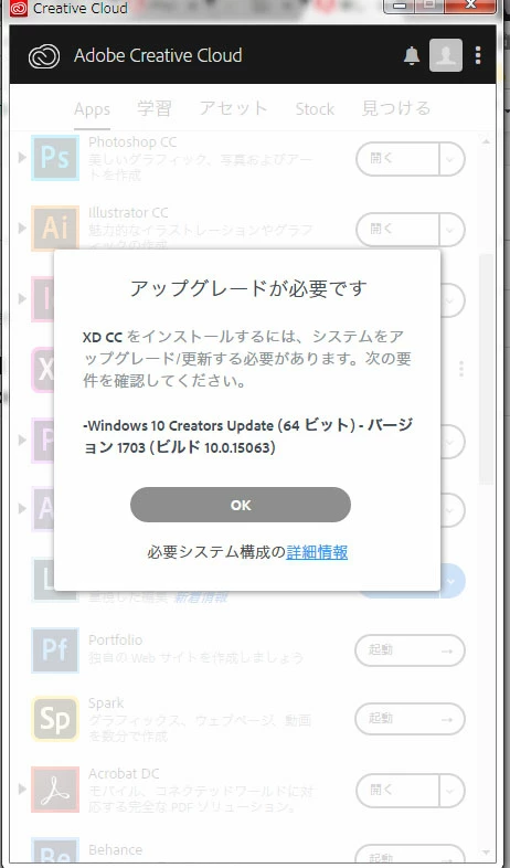 Adobe XDが「互換性がありません」という表示