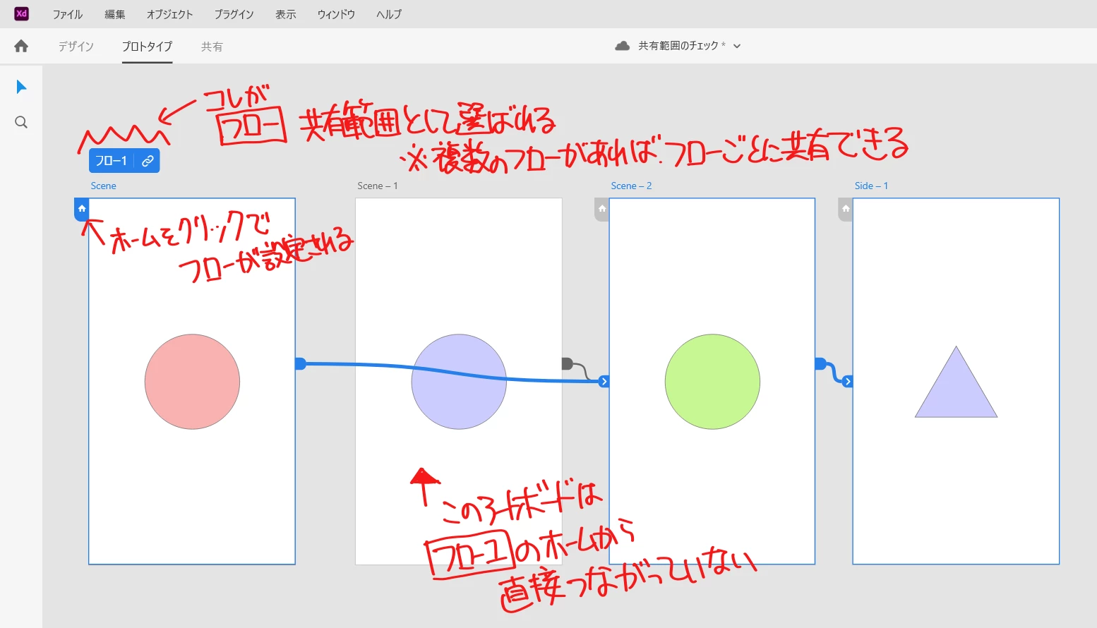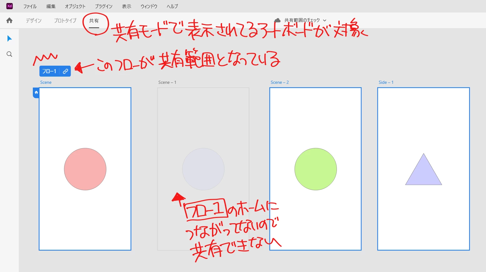Adobe XDの共有タブで、全てのアートボードが共有されないです。