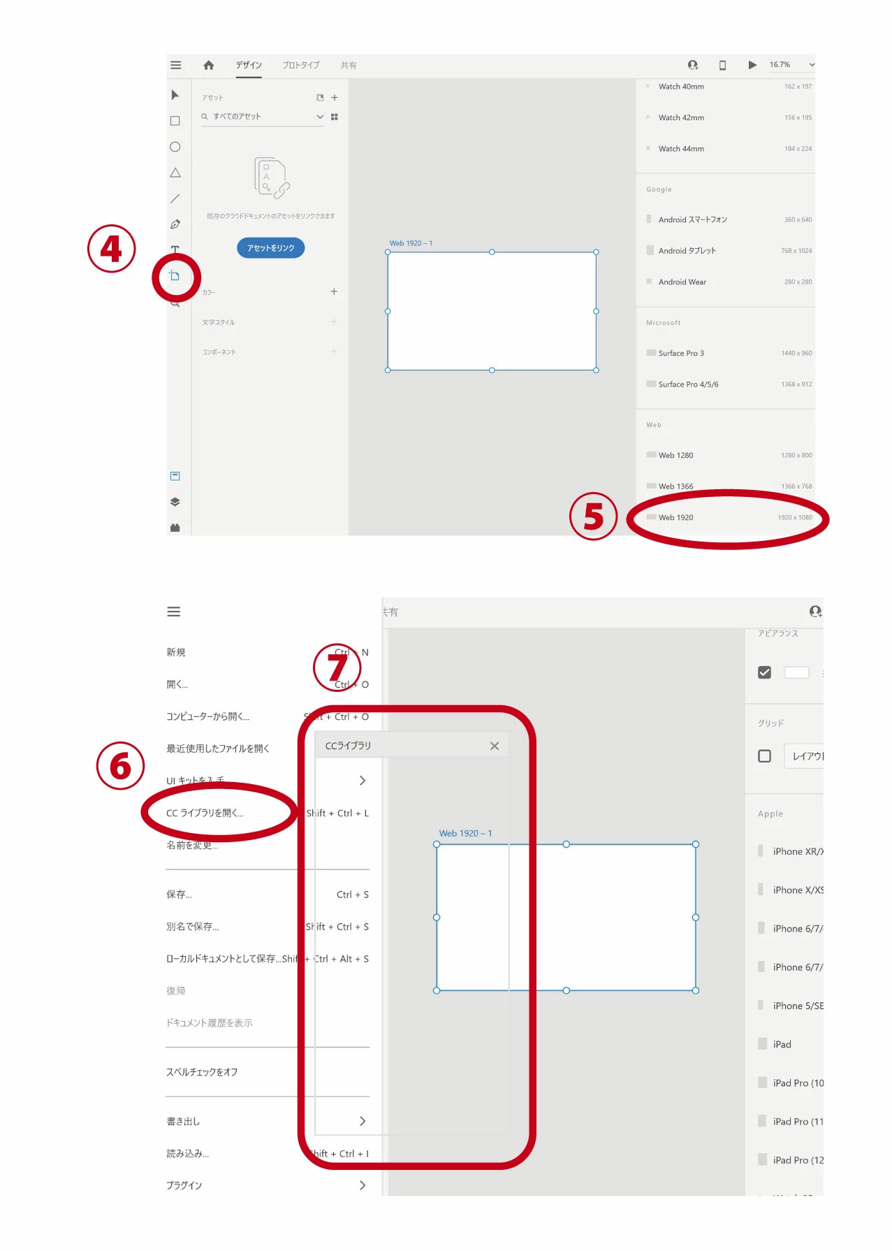 ④左のアートボードのアイコンを選択して、