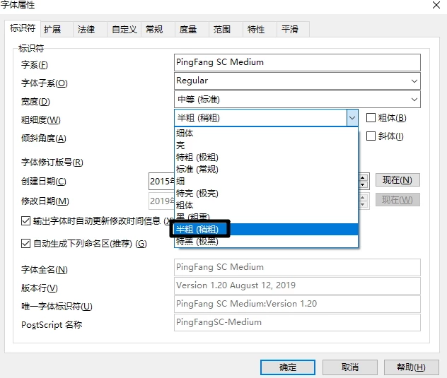 win10系统20.2.12.1版本的xd中,苹方中/英字体medium与regular显示结果一样