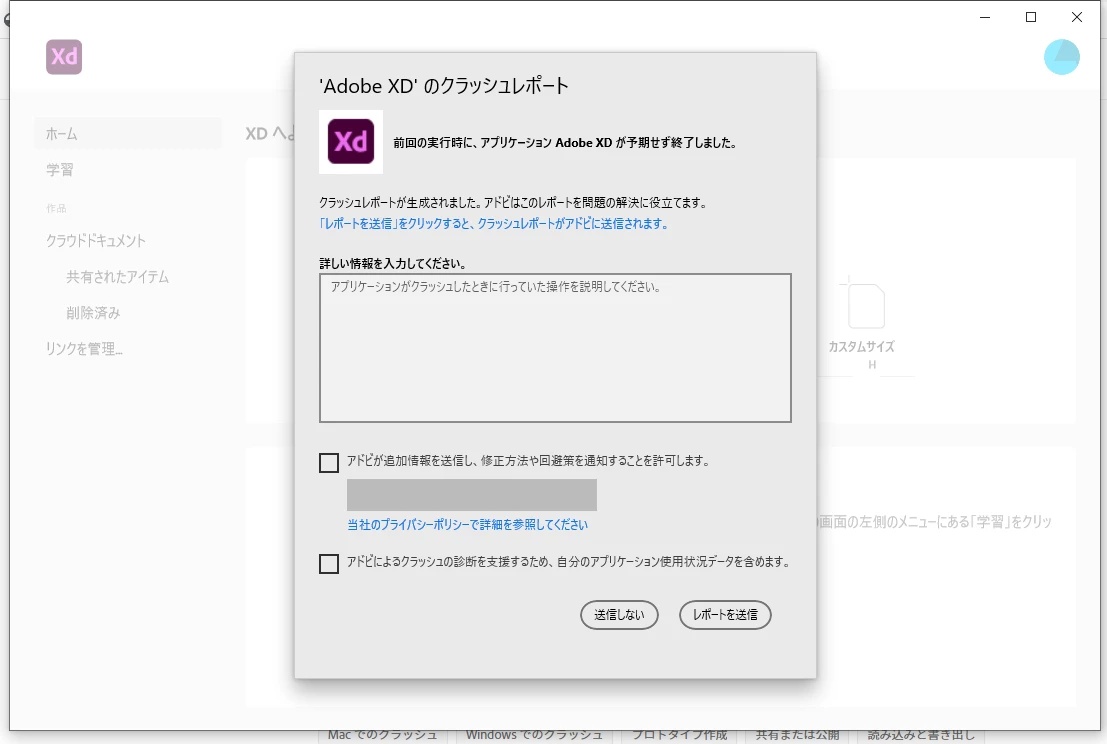 Adobe XDをバージョンアップして使用しようとすると、クラッシュします。