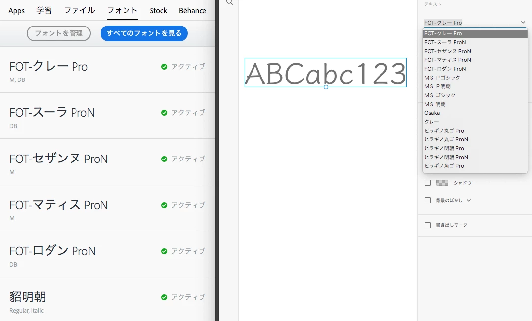 Xdのフォント一覧にアクティベートしたフォントが表示されない