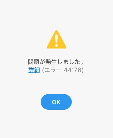 8分くらいかけて100%になり、44:76エラーが出ます。