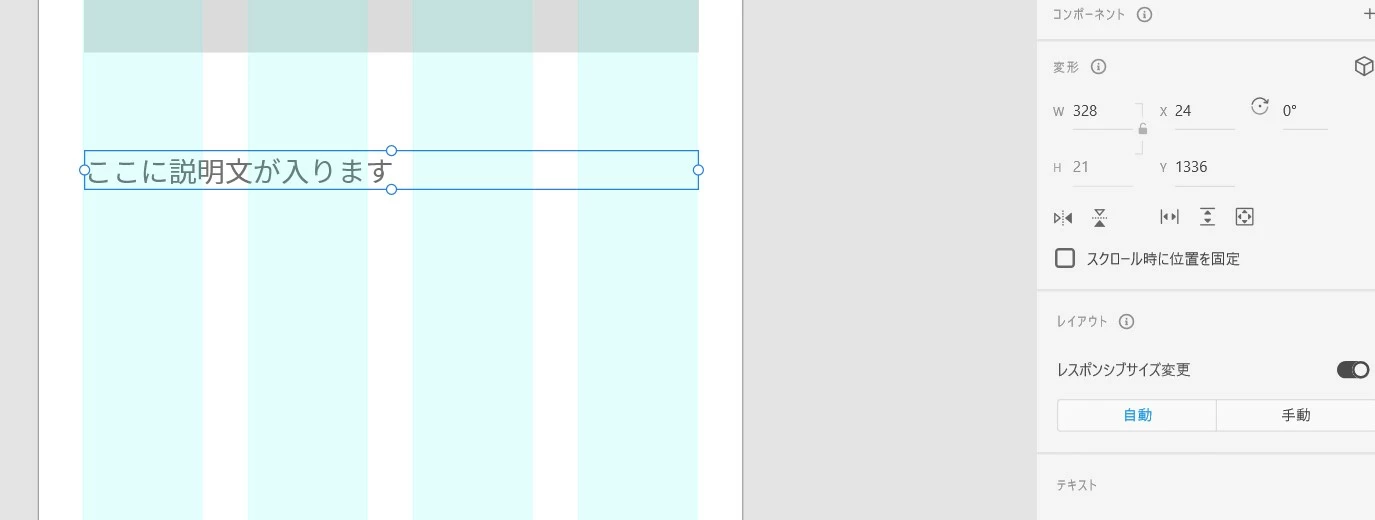 初期状態であれば文字サイズと行間からなるサイズで固定されます。テキストフレームの下部中央の丸印を下方にドラッグすると縦サイズが変化しますので、以降数値入力も有効になります。