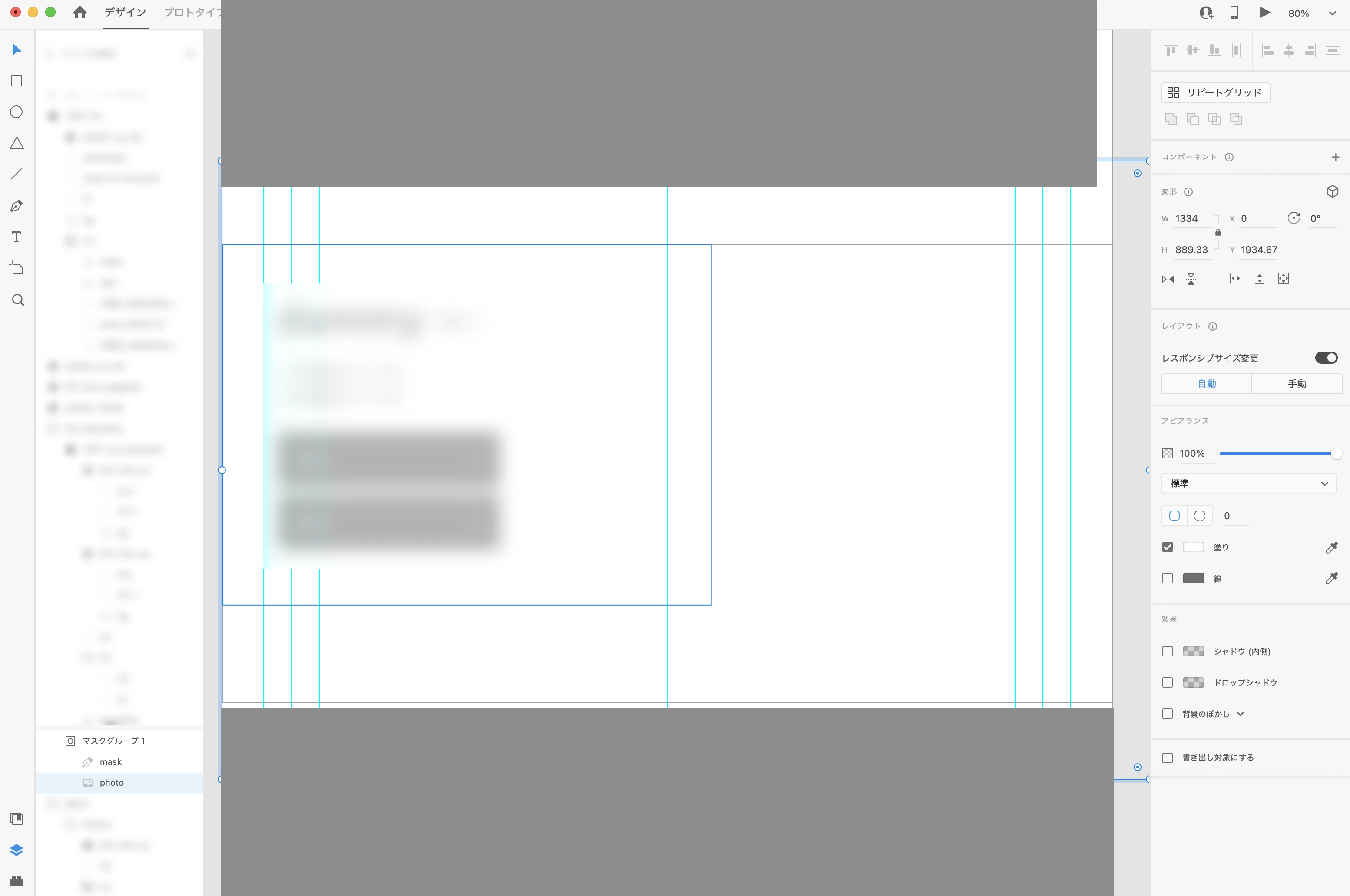 ・画像はアートボードへの直接ドラッグ&ドロップ→シェイプでのマスクで編集をしています(NOT:シェイプへのドラッグ&ドロップ)