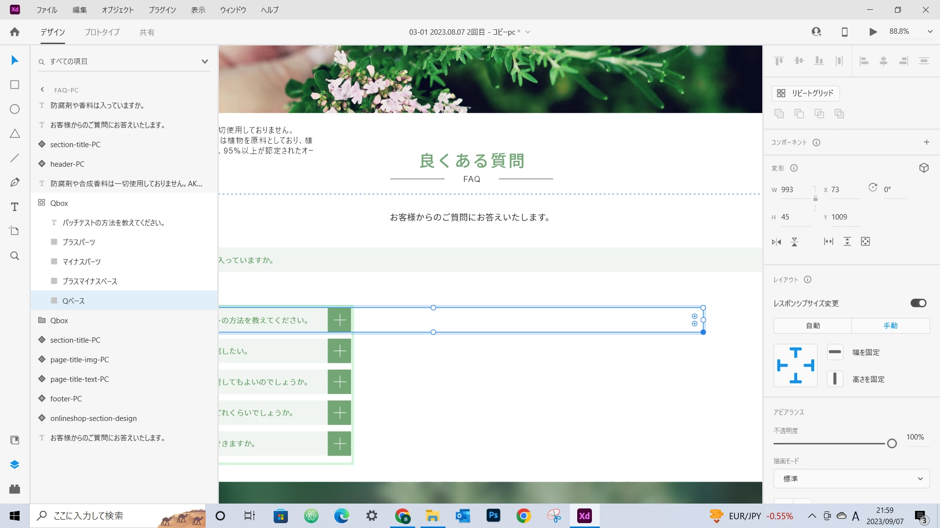 XD リピードグリッド1行目を繰り返させず、そのまま横に伸ばすにはどうすればよいでしょうか?