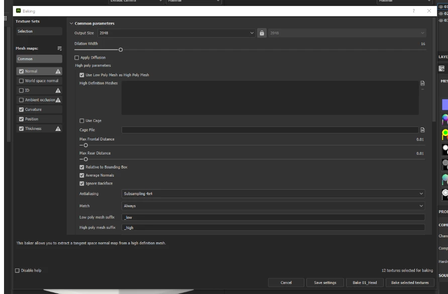 Substance 3D Painter:ベイカー設定Windows?が出てきません