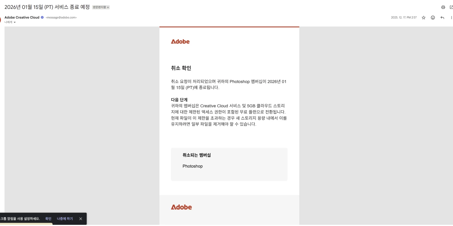 ▶ 참고 페이지 : Adobe 구독 및 취소 약관