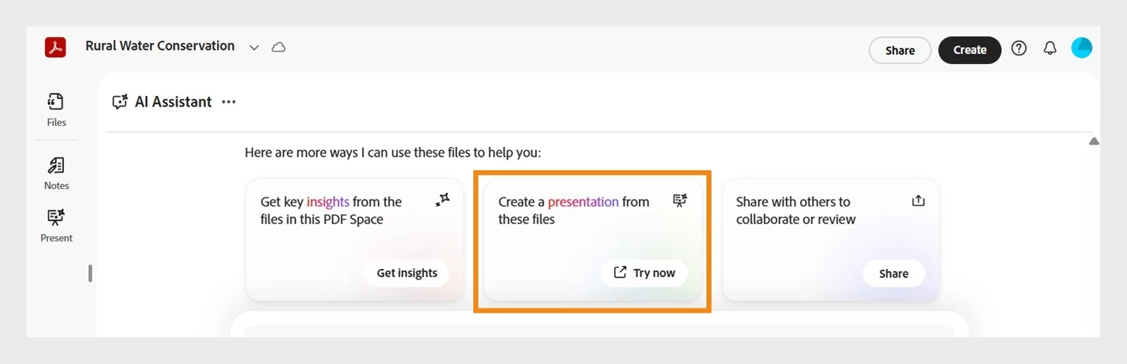 | 프레젠테이션 생성 (Adobe Express × Acrobat) | Express 또는 Acrobat에서 시작하면 프레젠테이션을 더 빠르게 만들 수 있습니다. Acrobat AI를 사용하여 슬라이드를 생성한 다음 Adobe Express에서 다듬고 간편하게 발표하세요. |