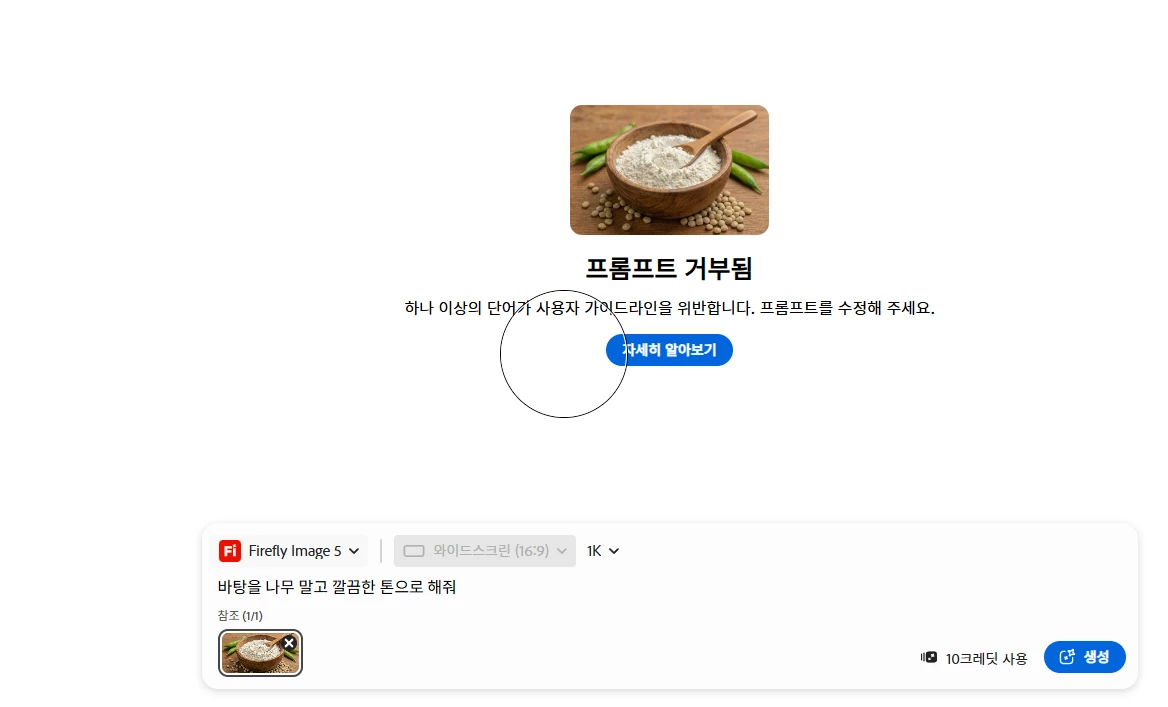 파이어플라이 프롬프트 거부됨. 왜 이런지 모르겠습니다.