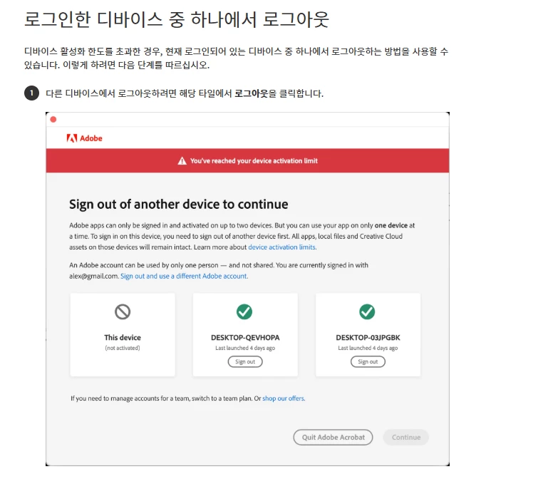 구독으로 이용하는 계정의 경우 다른 모든 PC에서 로그인해서 앱 이용이 가능하시나,
