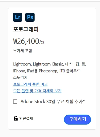 저는 포토그래피 플랜만 사용하는데 클라우드도 필요없고..