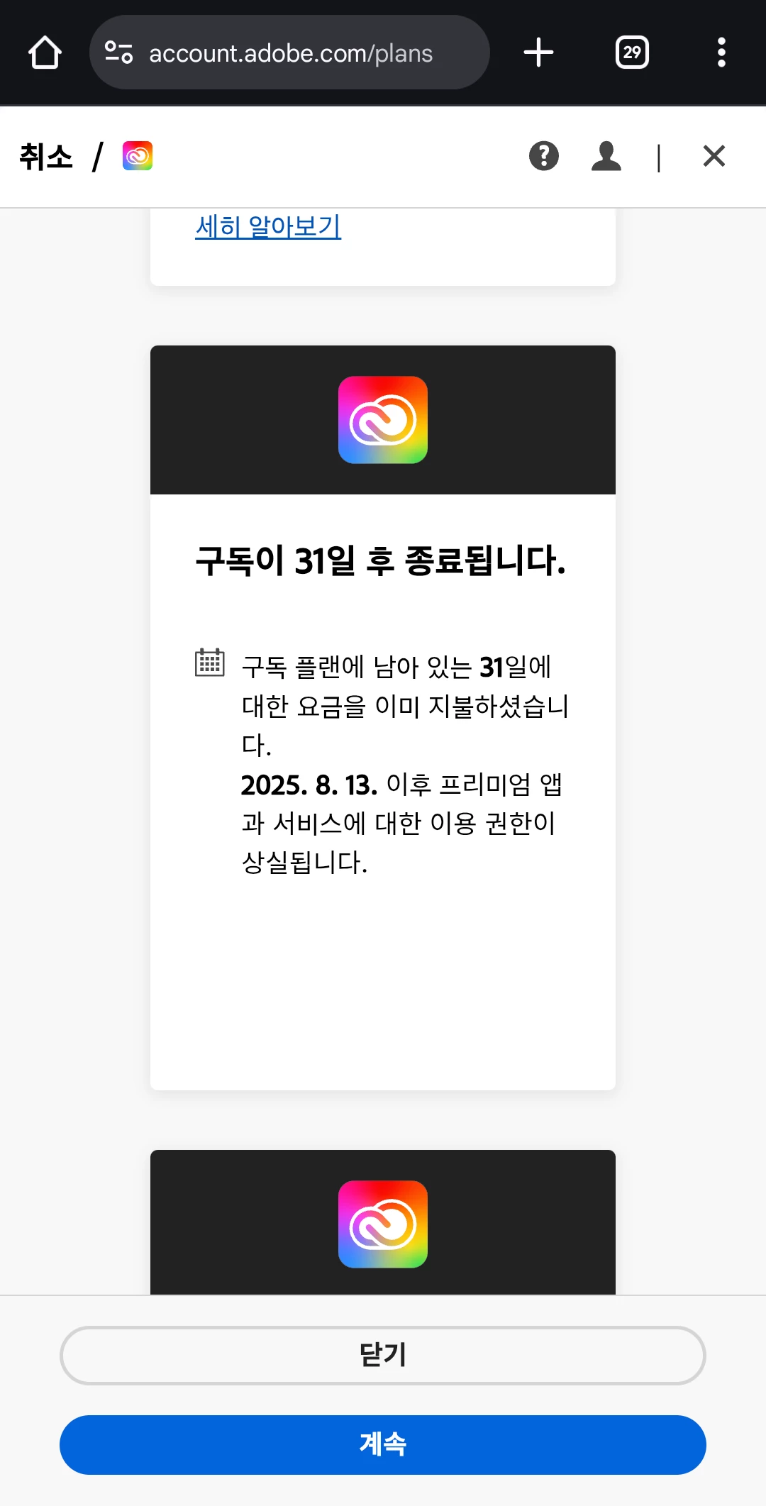7월 13일에 갑자기 결제된 플랜을 그날 바로 해지하려고 했더니 수수료가 붙는다길래 그냥 두었습니다.