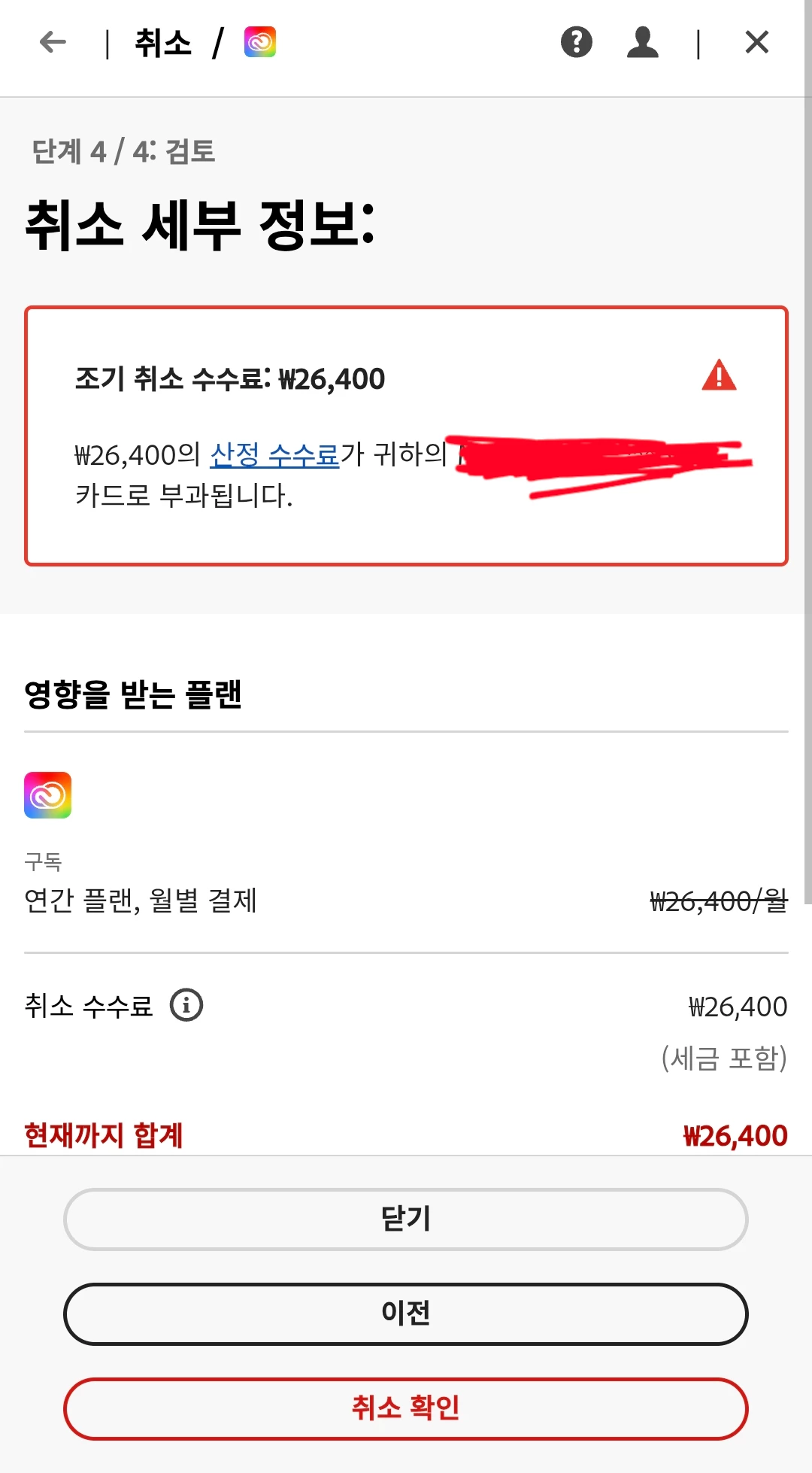 갱신되는 카드에 돈이 없기도해서 결제 전(8월 13일)인 오늘(8월 11일)에 플랜 구독을 취소하려고 하니 플랜을 사용하지도 않았는데 수수료가 붙더군요.