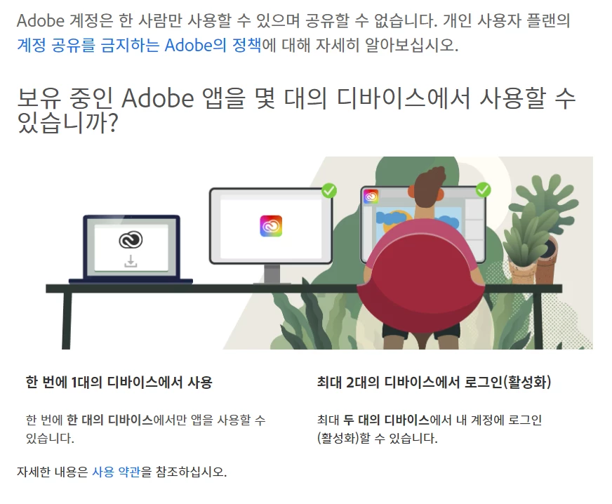 다만 활성화 기기가 2대라고 해서 하나의 라이센스로 2대의 기기에서 이용할수 있는것은 아닙니다.