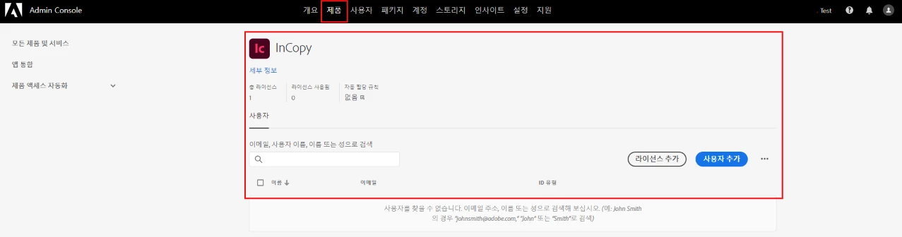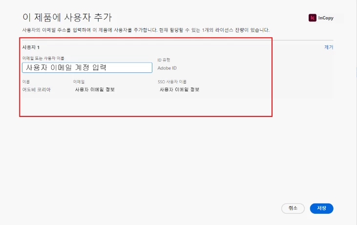 ⓓ 관리자(소유자)는 아래 이미지와 같이 제품 라이선스에 사용자의 계정을 할당합니다.