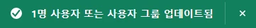 ⑤ 하단에 부여했다는 메시지 확인과 권한을 준 관리자(소유자)는 사용자에게 권한 이메일일 발송되었음을 알립니다.