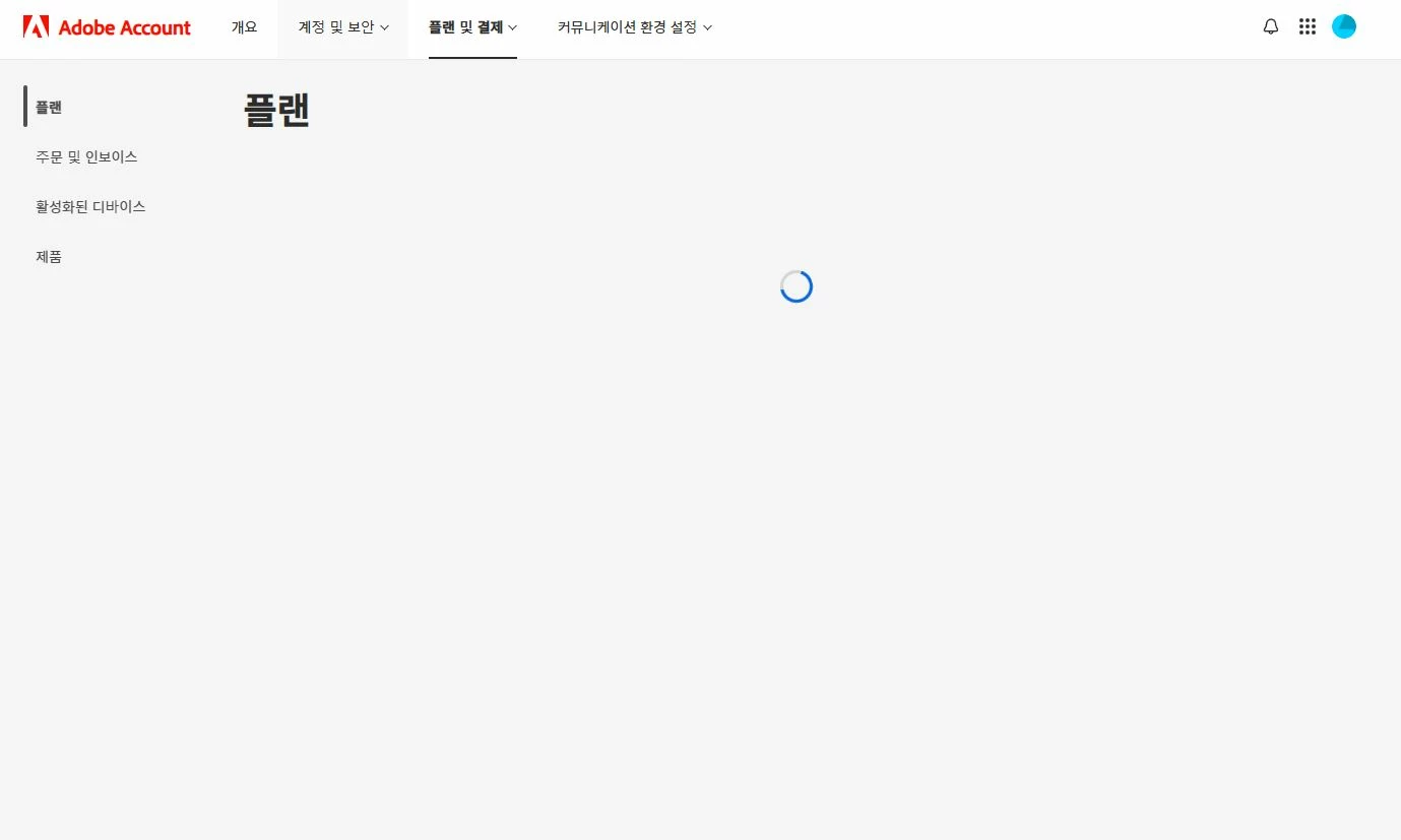 로그인 후 내 계정관리, 내 플랜 접속을 시도하면