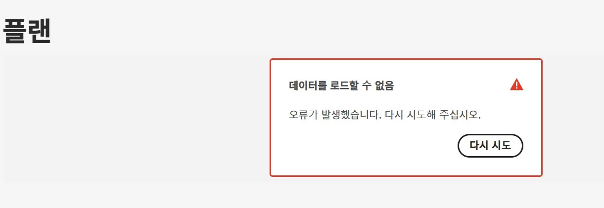 ?????_5438ParticipantForum|Forum|1 year agoNovember 3, 2024Question내 플랜을 로드 할 수 없습니다 / 다운로드Forum|Forum|1 year agoNovember 3, 20241 reply589 views플랜을 볼려니까 로드 할 수 없다고 뜹니다.쿠키삭제도 하고 클리너 사용해서 어도비 프로그램 다 삭제했는데도 그대로입니다.진짜 답답해 미치겠습니다.제가 뭘 구독중인지 확인도 안되고 프로그램 설치도 안되고 답답해 죽겠습니다 진짜해결 좀 부탁드립니다 진짜 답답해서 미칠거 같습니다 진심;계정 관리