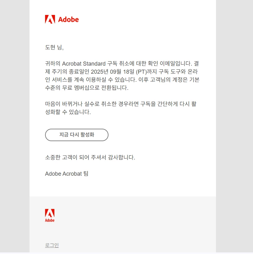 취소에 어려움이 있거나 도움이 필요하신 경우 자세한 확인을 위해 https://helpx.adobe.com/kr/contact.html
