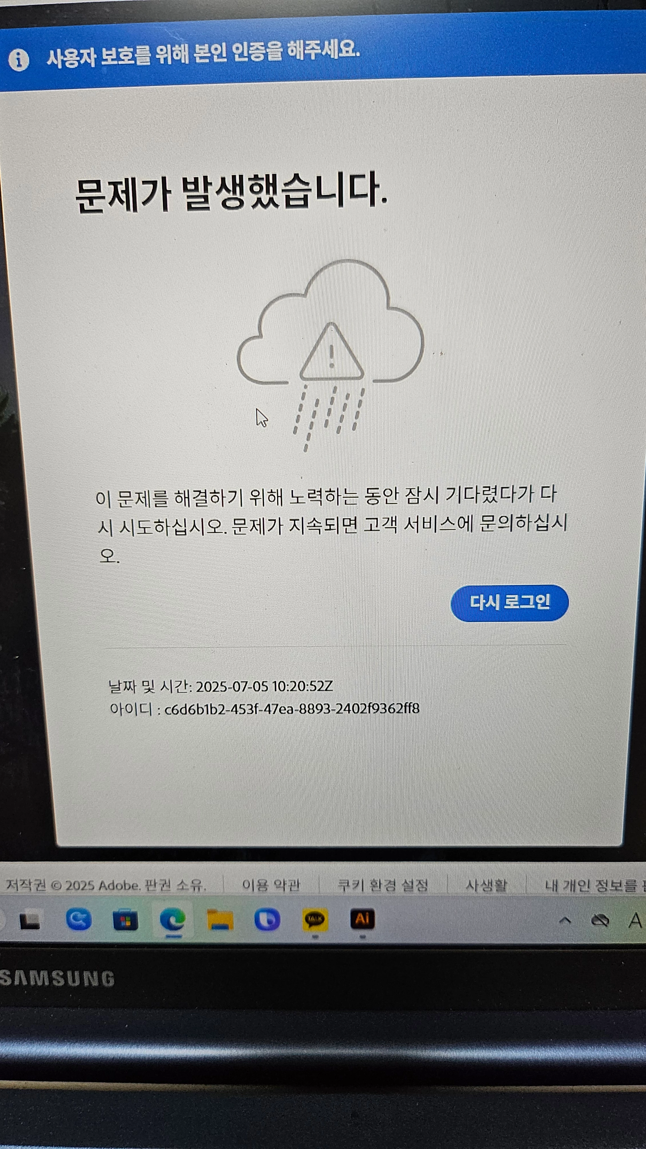 넘어가더니 구름, 비모양이 뜨며 오류가 납니다.