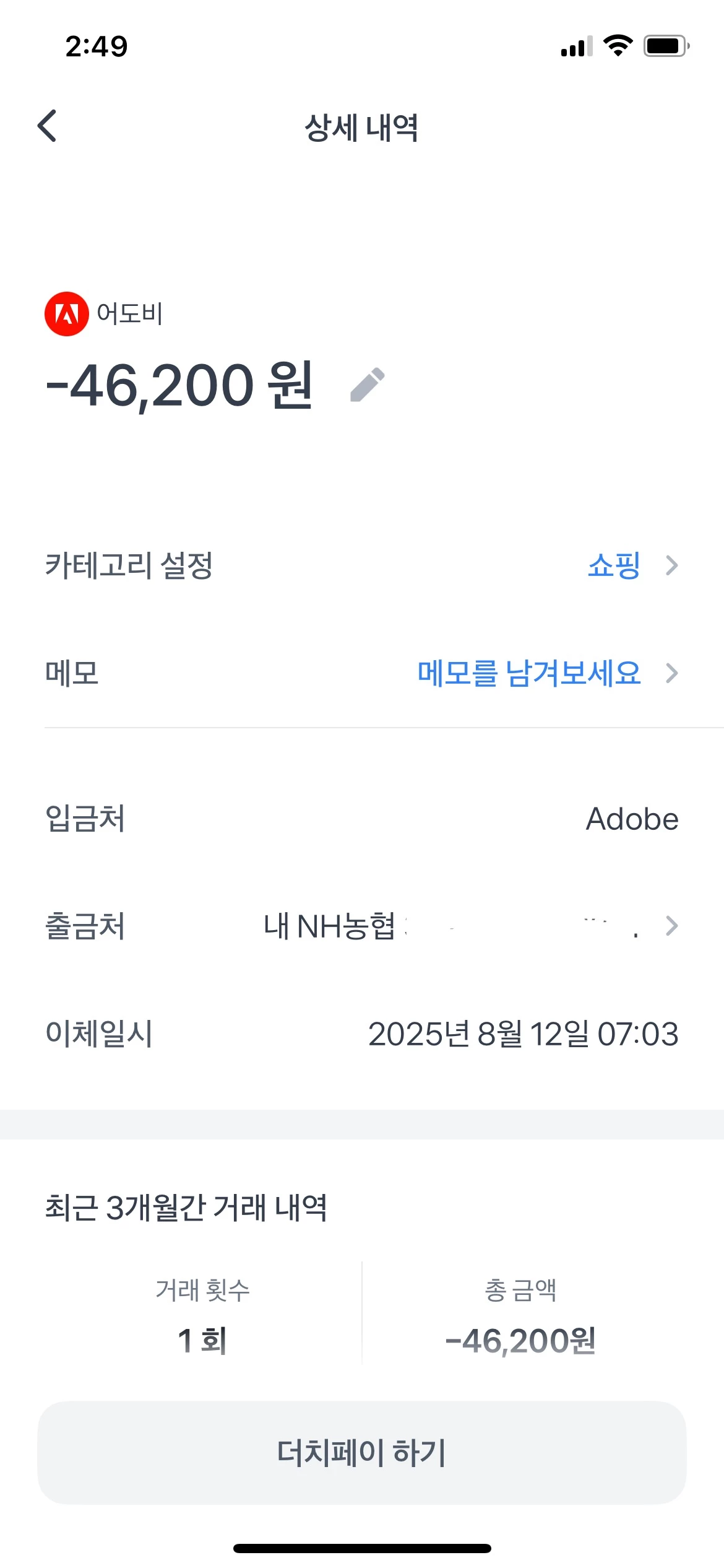 어도비 인보이스 및 청구내역에는 8/11 결제라고 나와있습니다.