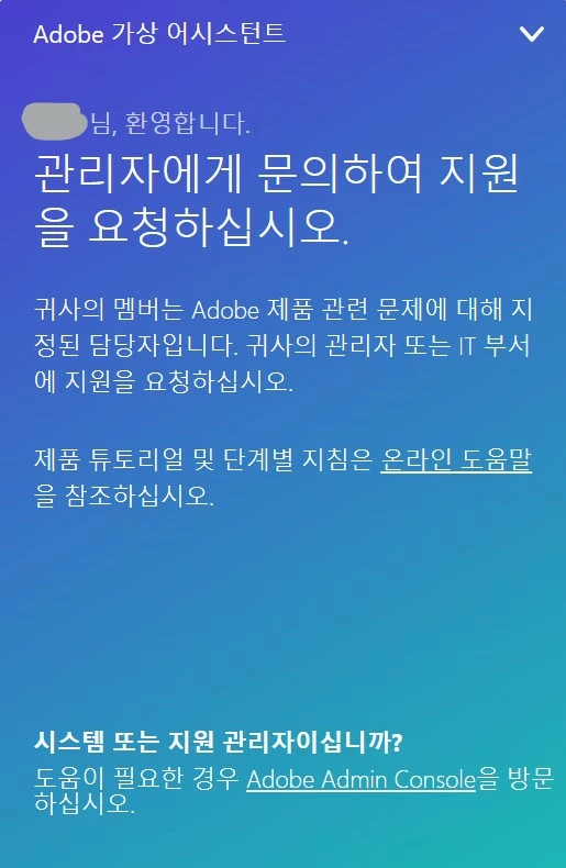 그래서 학교 Tech Support에 이메일로 물어봤지만 어도비 고객지원 센터에 연락해야 된다는 답을 얻었습니다.