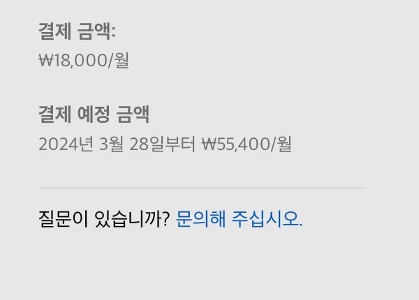 한달 이후에는 55,400원 월 결제라고 되어있어서요
