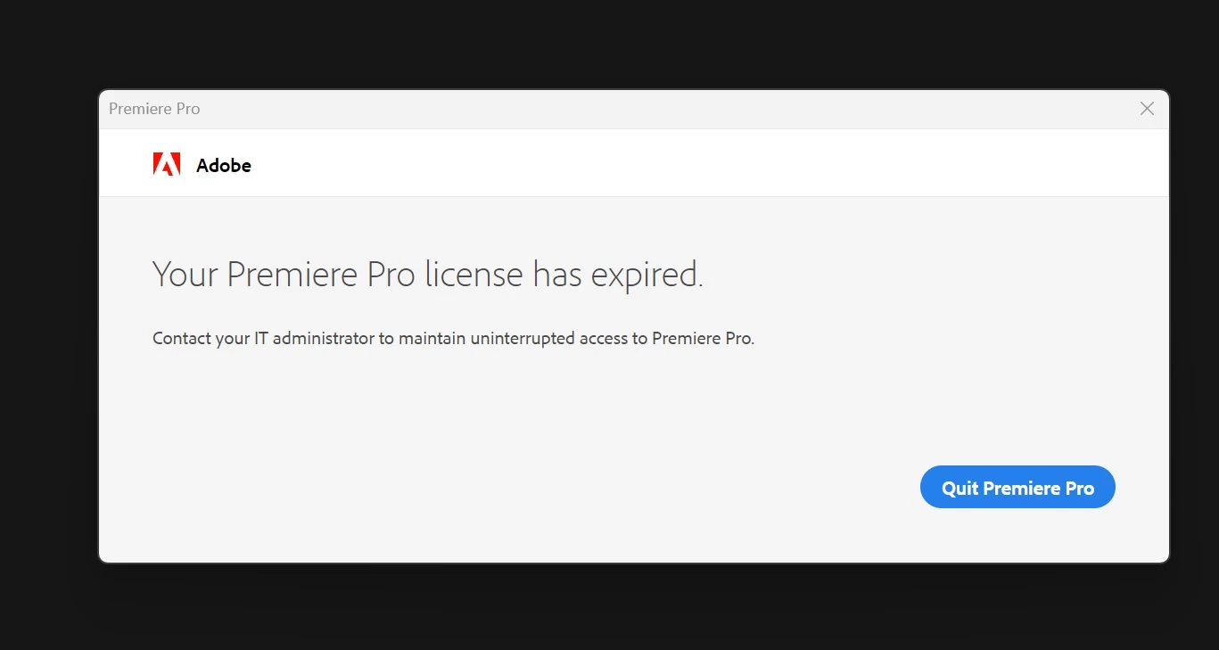 Creative cloud 데스크탑을 실행 > 로그아웃 > 재로그인 진행 후 > 앱 > 프리미어 프로 열기로 실행