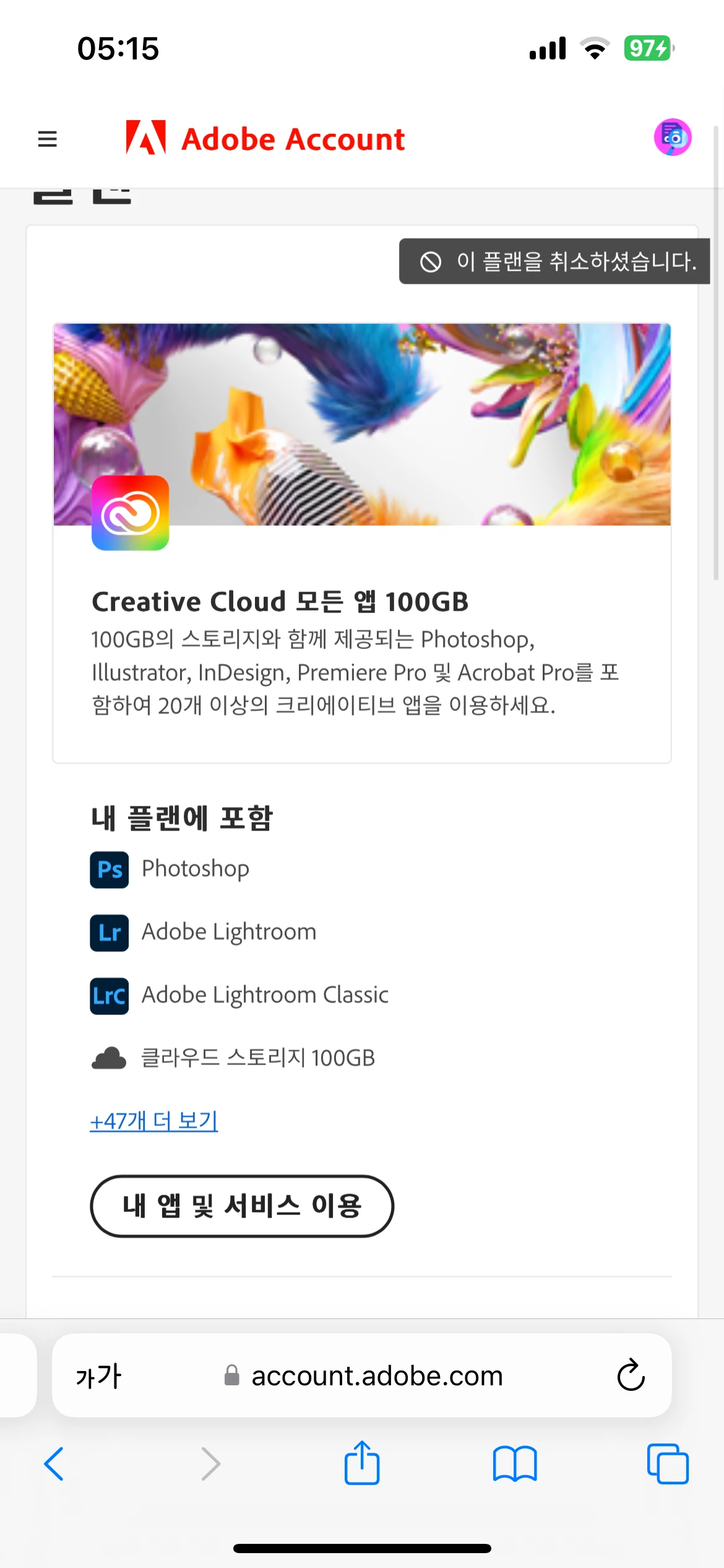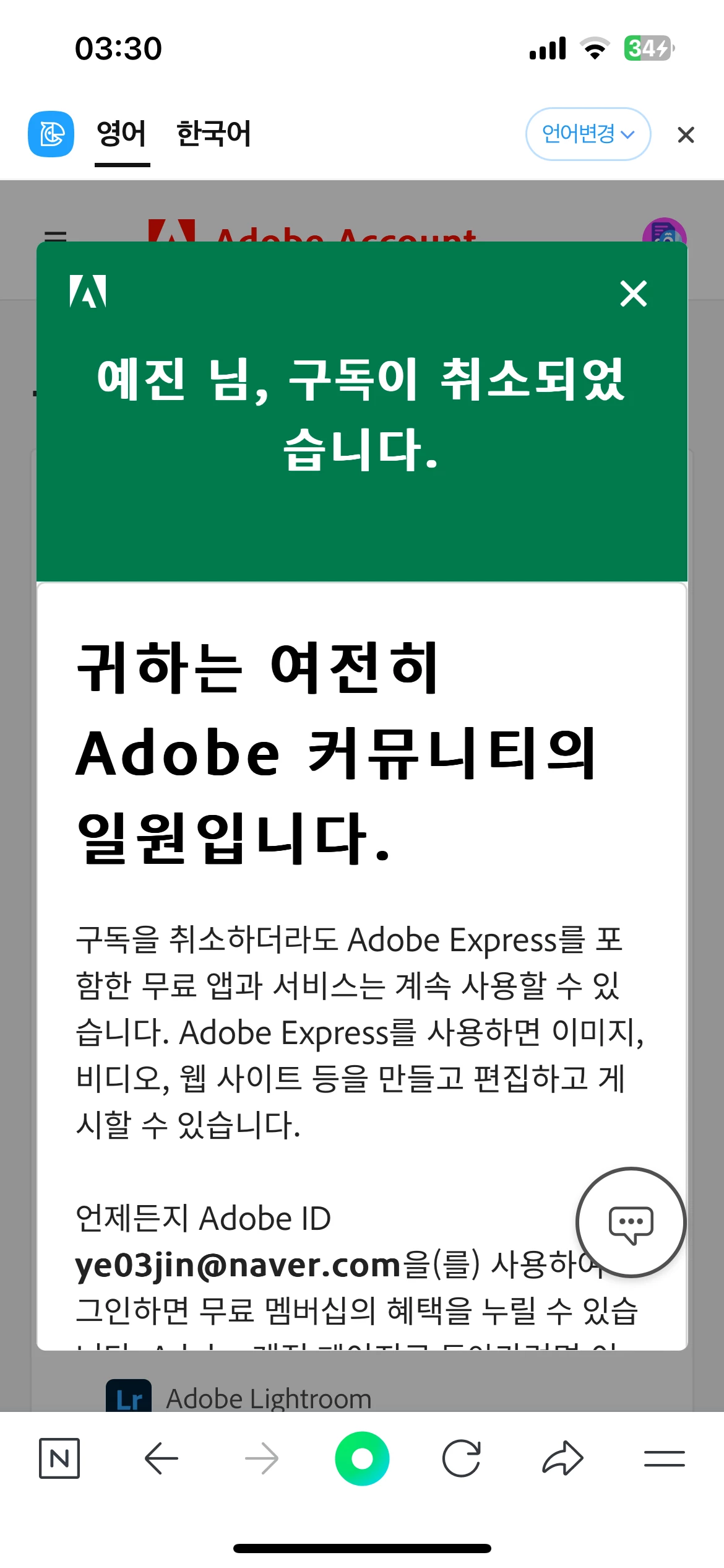 결제, 취소와 관련하여 도움이 필요하신 경우 자세한 확인을 위해 Adobe 고객지원으로 문의해 주시기 바랍니다.