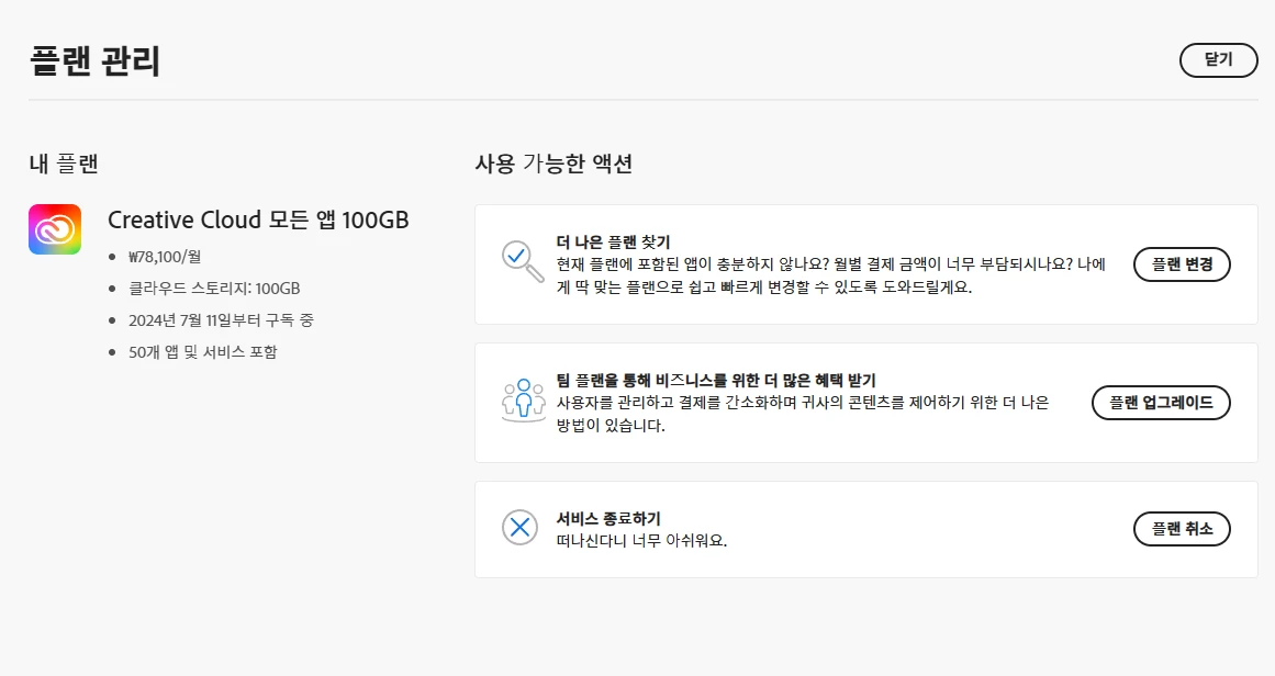 구독 해지 예약 같은 서비스도 없다는 것, 이런 부분에 대해 이야기할 창구조차 제대로 마련되어 있지 않다는 것이 어도비에 대한 신뢰를 무너뜨리는 것 같다는 안타까운 생각이 듦.