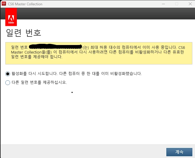 최대 허용 대수의 컴퓨터에서 이미 사용중입니다. 에러 발생을 없애는 방법을 알려주세요.