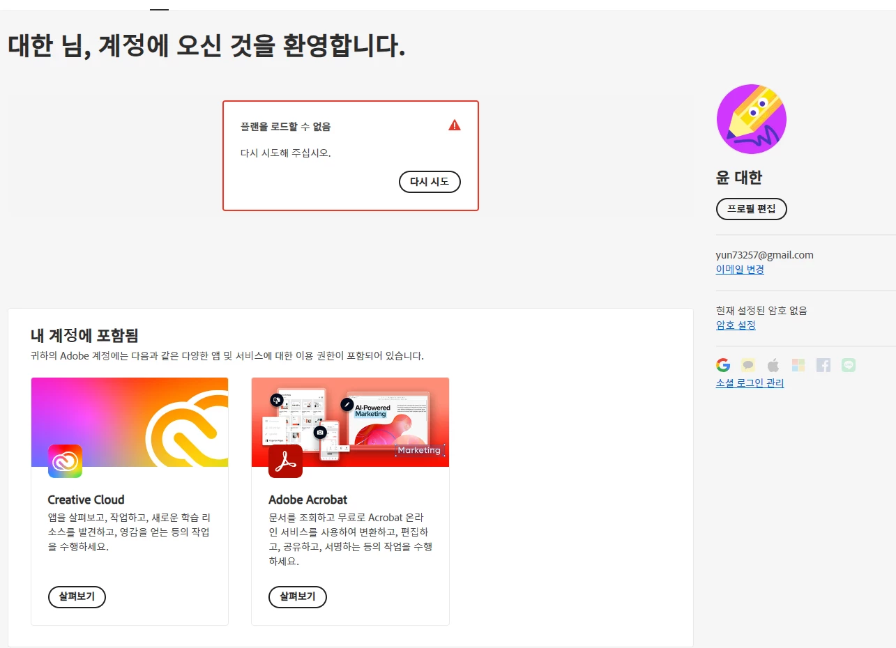 사용자분의 개인 정보(예: 어도비 계정, 결제 정보) 확인이 필요 하다보니,