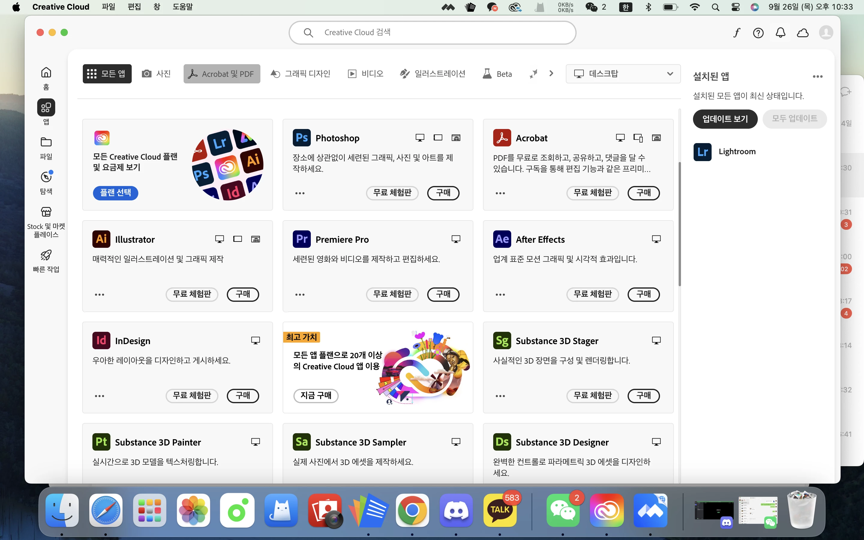 맥북에서는 아래 사진처럼 업데이트가 안 되는 건지 플랜 연동이 안 되는 건지, 무료체험판과 결제 버튼이 나옵니다.