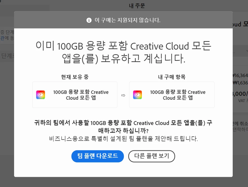 이미 Creative Cloud 모든 앱을 보유하고 있다고 떠서 학생가격으로 구매할 수가 없네요.