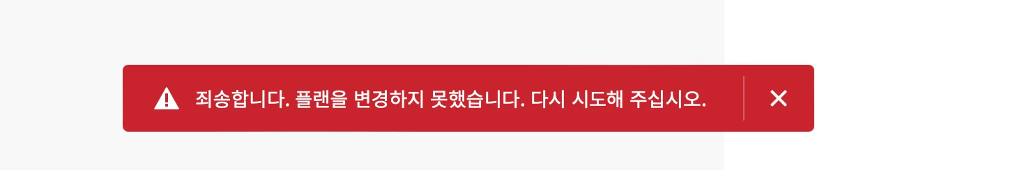 플랜을 바꾸려고 하는데 어제부터 계속 오류가 떠요 다시 시도해도 똑같아요
