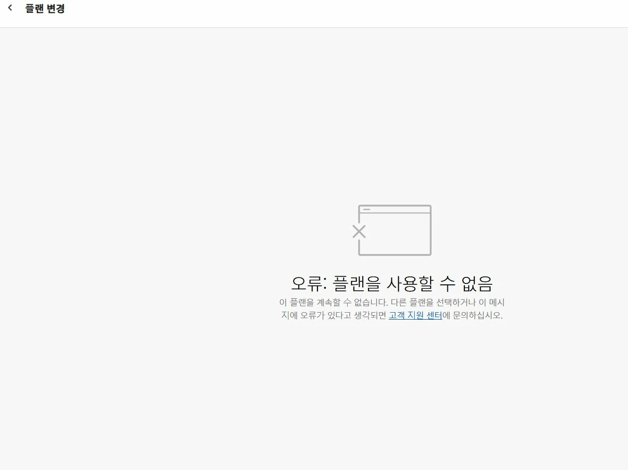 플랜 변경 하고 싶은데 원하는 플랜 페이지에 들어가면 오류가 납니다