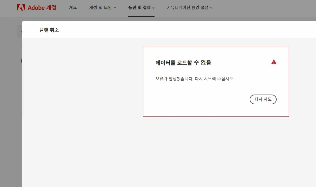 플랜 취소하고싶으나 데이터 로드가 안됨이라고 뜸