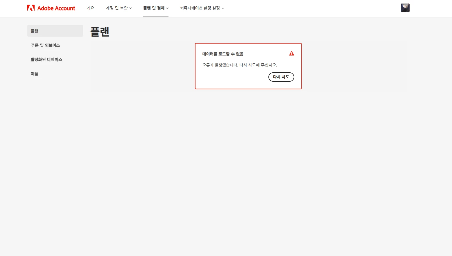 플랜 확인 오류 메세지 데이터를 로드할 수 없음