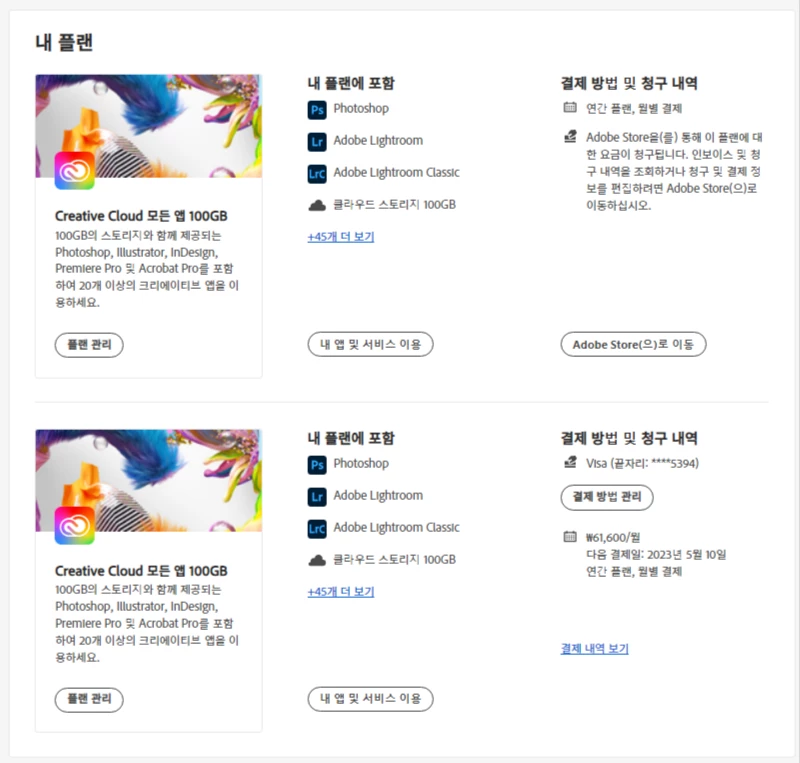 기존 플랜이 에러(?)로 인해 플랜에 포함된 앱들을 사용할 수 없어 새로 플랜 결제하였는데,