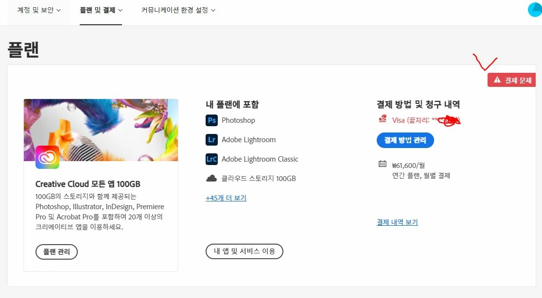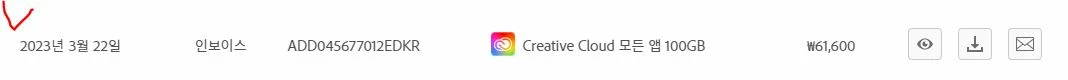 Creative Cloud 플랜 구독 3월 22일 날짜로 \61,600 결제 되었으나