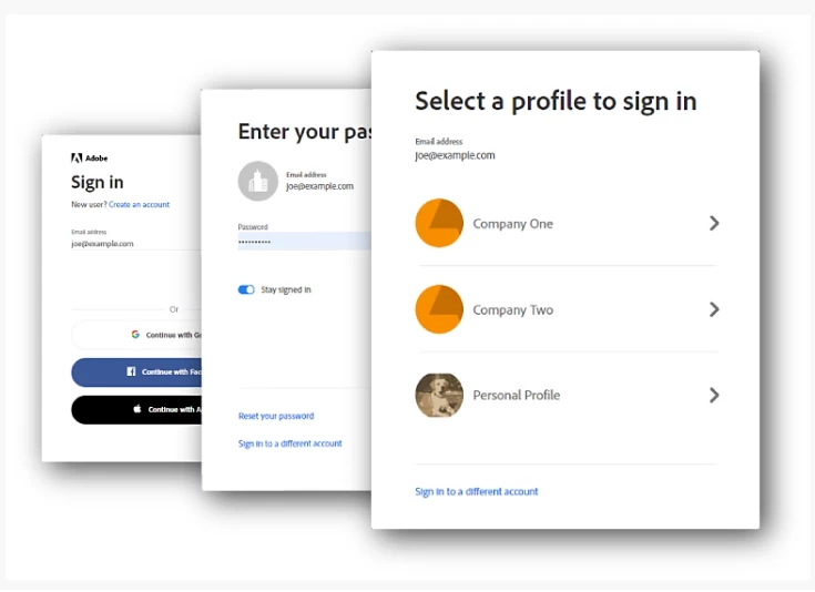 계정 입력 > 비밀 번호 입력 > 프로필 선택으로 보입니다.
