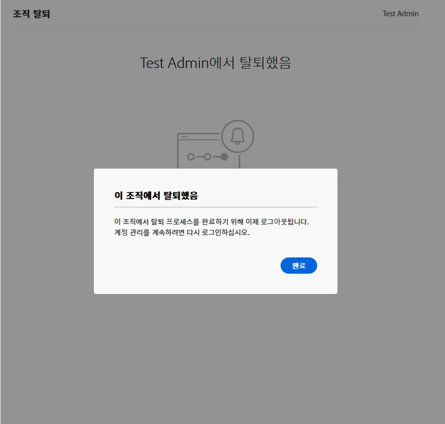 먼저 조직(팀)을 다른 관리자에게 이전해야 계정 삭제(탈퇴)가 가능합니다.
