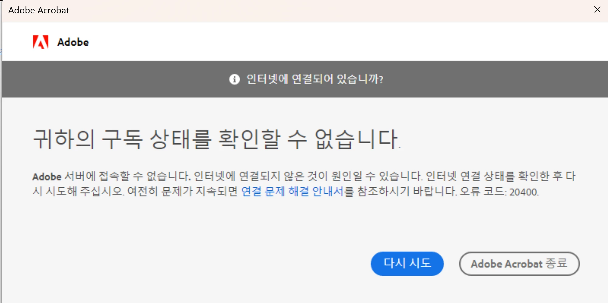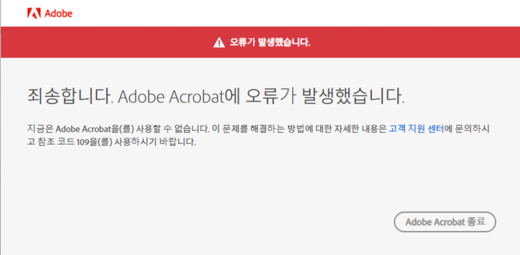 아크로뱃, 프리미어 프로에서 모두 해당 오류가 나오네요...