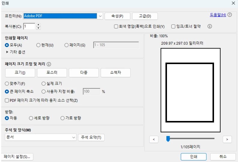 맥에서 파일에 A4와 A3가 혼재되어 있을때, A4사이즈 통일해서 내보내는 법??