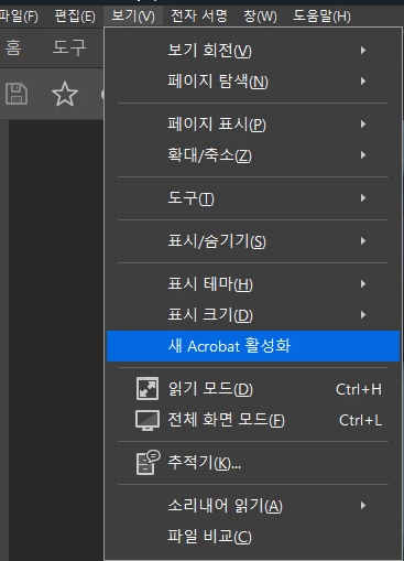 한번 상단의 보기 메뉴에서 새 아크로벳 활성화를 진행해서 UI변경후 드래그앤 드랍을 해보시겠어요?